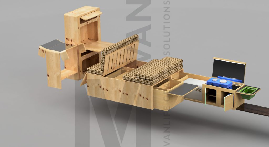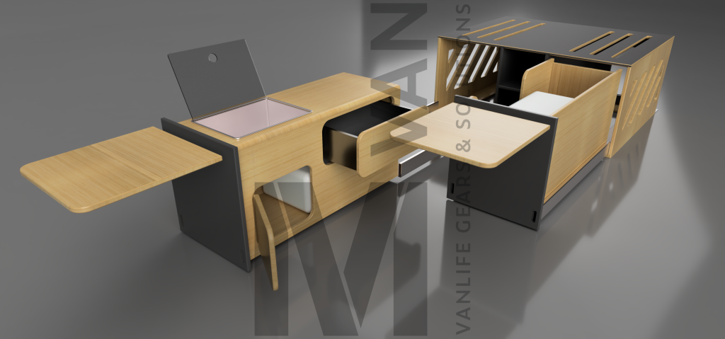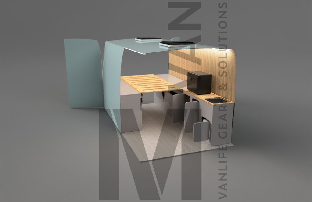 Modulo Fiat Ducato con cucina, stivaggio e letto in multimateriale