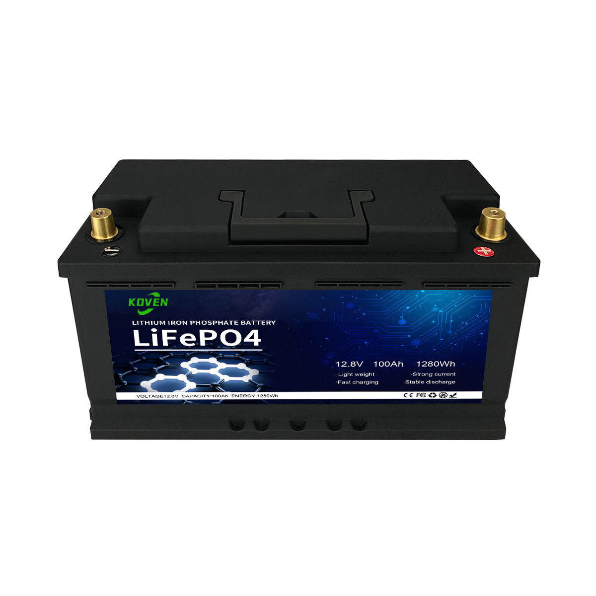 • Leggerezza e Potenza: Solo 11 kg di peso per una capacità di scarica continua di 100A. Più energia disponibile con meno della metà del peso di una batteria al piombo.