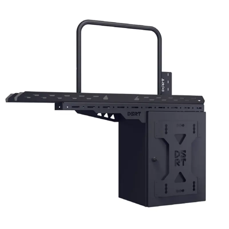 Le bici sono semplicemente posizionate sulle guide, fissate tramite cinghie e assicurate alla staffa con appositi supporti. È inoltre possibile trasportare una ruota di scorta opzionale. Aggiungendo una ruota di scorta o un secondo box, la capacità di carico del portabici può essere ulteriormente aumentata. Una soluzione ideale per chi desidera unire flessibilità, sicurezza e spazio di stivaggio in un unico sistema.