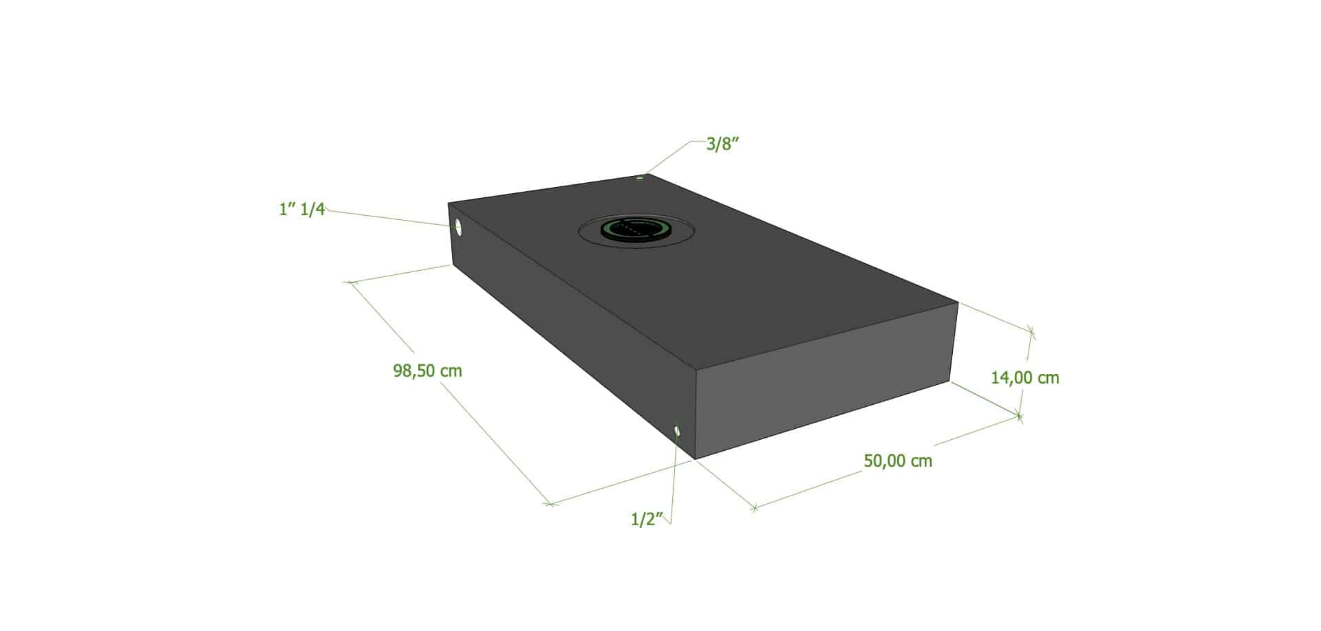 Serbatoio 65 Lt Nero 99x50x14 Cm Tappo Maschio Verde